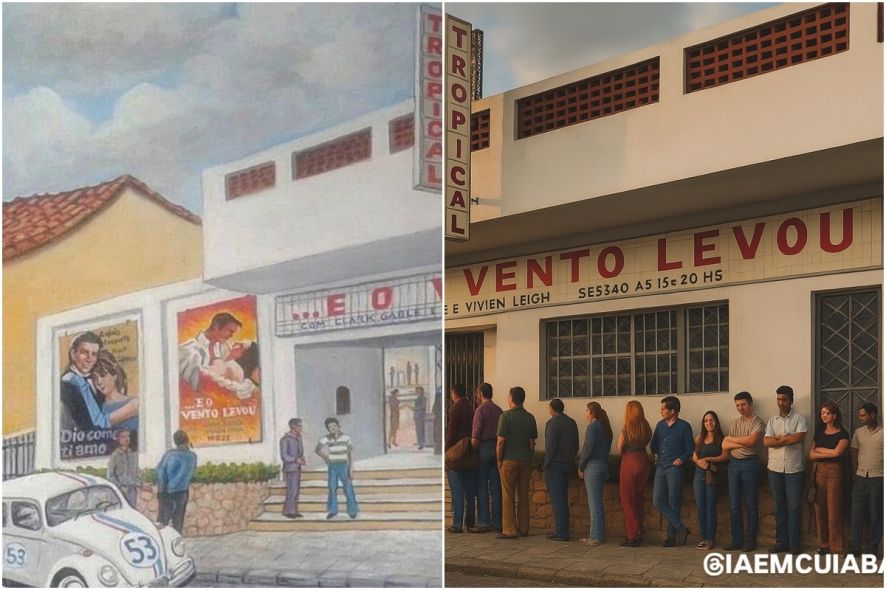 Já entre os sucessos, ele destaca a imagem que mais o emocionou ao longo do processo de recuperação da memória histórica por meio da inteligência artificial: trata-se de uma pintura produzida por Vitor Hugo do Cine Tropical de Cuiabá.