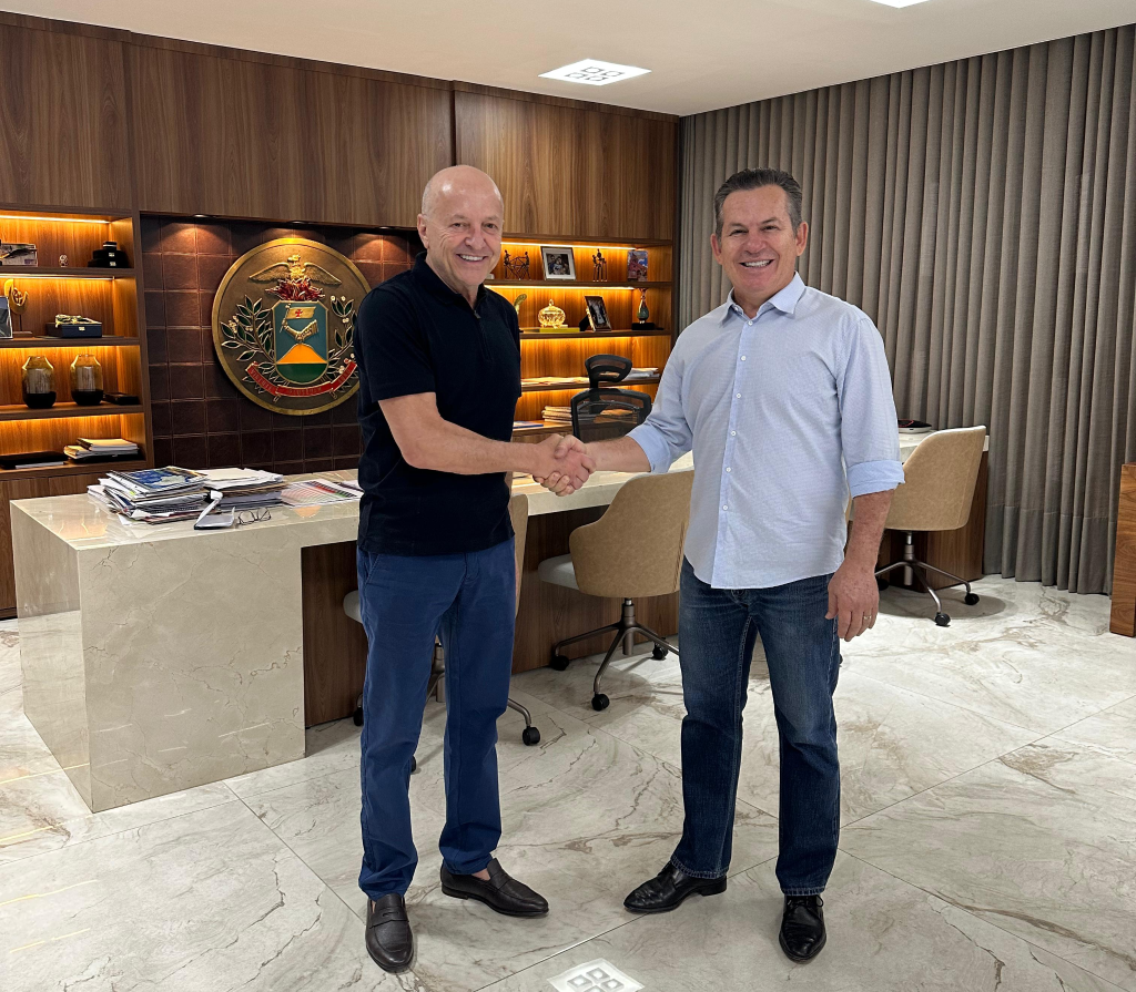 O governador Mauro Mendes transmite o cargo para o vice-governador Otaviano Pivetta a partir deste sábado (23.8).